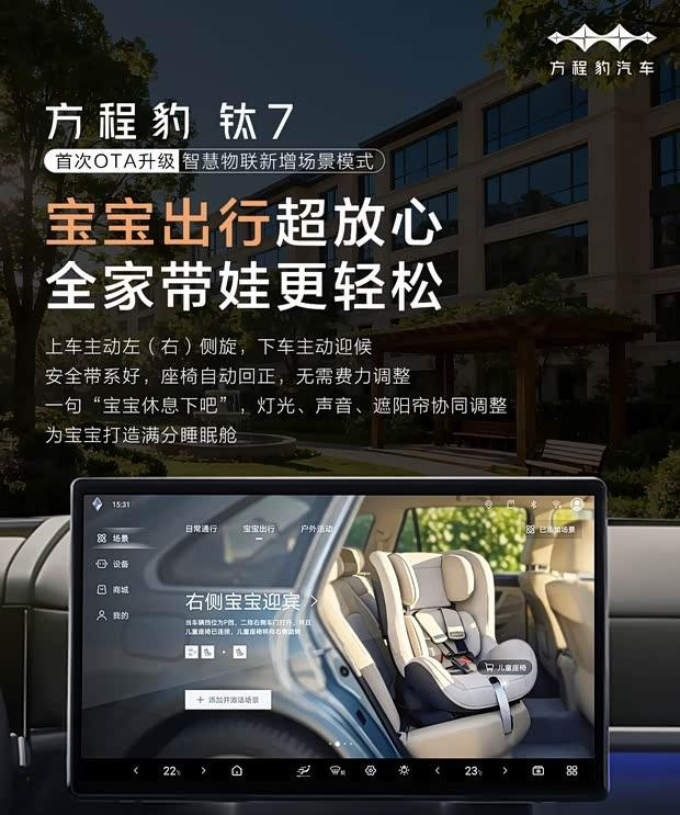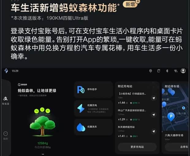 此次更新在智慧互联方面增添了场景模式选项,涵盖日常出行、宝宝出行及户外活动三大类,用户可便捷地一键启用相应场景。同时,系统新增了对座舱物联网设备的语音控制支持,例如可通过语音指令操作兼容的儿童安全座椅等生态产品。车生活服务方面则引入了蚂蚁森林功能,用户可在相关小程序内或通过桌面卡片收集绿色能量。